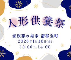 1月16日◇蒲郡市にて人形供養祭開催蒲郡市の家族葬の結家にて人形供養祭開催決定! ◇◆「家族葬の結家 蒲郡宝町」イベント開催のご案……