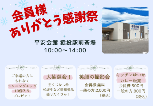 【お知らせ】真心(まごころ)ホールは平安……