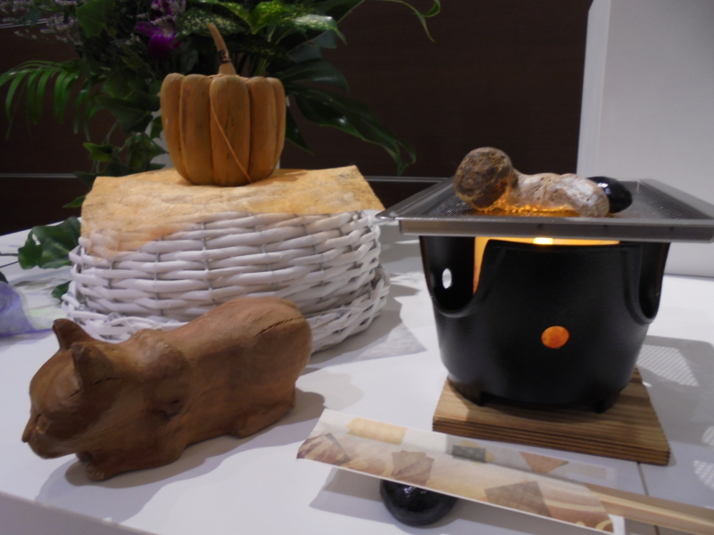 手で物を作り出す、そんな、私からすると魔法のようなことをされておられた方でした。木を彫って削って、まるで生きているかのような作品を作り出されていてとっても素敵だったので、少しだけアレンジしてお飾りさせていただきました。