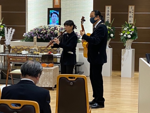 音楽関係に携わっておられるご家族様。「音楽で送ってあげたい。」と葬儀のお勤め後、ギターとドゥドゥクの献奏。そして好きだったオリジナルソングのプレゼント。