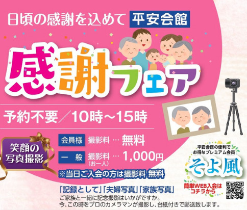 会館ごとに開催日が変わります。ご確認の上、お近くの平安会館(岡崎市)へお越しください。