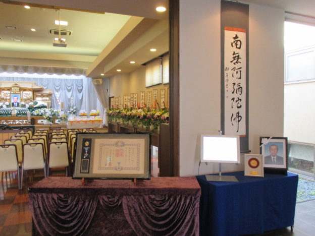 活動も何十年とされて勲章もいただいたそうです。ご家族よりお父さんの功績として、床の間に