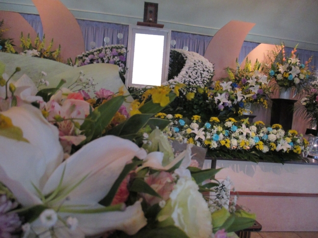 祭壇横に飾ったお花や供物もたくさん写真を撮られておりました。