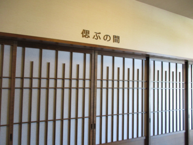 私も始めは、なんのことか(しのぶ と聞いて忍を思い浮かべたので)分からなかったのですが、この部屋の上の方を見てお話されたので(あっ!この偲ぶ)