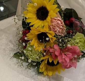 心ばかりではありますが、夏らしい向日葵を入れた小さなブーケを、スタッフより喪主であるご長男様へお渡しさせていただきました。