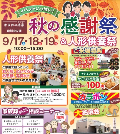 【開催終了】9/17(土)~9/19(月)開催!秋の感謝祭&人形供養祭